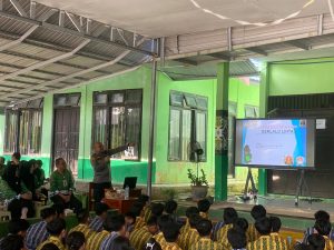 Sosialisasi berlangsung dengan tertib dan interaktif. Para siswa tampak antusias mengikuti kegiatan serta mengajukan pertanyaan seputar aturan dan keselamatan berlalu lintas.