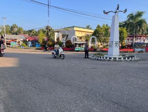 Polda Kalsel, Polres Tabalong, Polsek Haruai – Personel polsek haruai melaksanakan kegiatan turlalin di persimpangan jalan yang di nilai ramai lalu lintas pagi hari, bertempat di simpang tiga tugu haruai, Jumat (26/9/25) pagi.