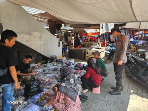 Dalam kegiatan tersebut, petugas berinteraksi langsung dengan pedagang, pengunjung, serta juru parkir. Tujuannya adalah untuk mendengarkan keluhan, saran, dan informasi terkait situasi keamanan di lingkungan pasar.