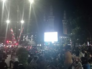 Polsek Tanjung melaksanakan pengamanan kegiatan Nonton Bareng (Nobar) pertandingan final sepak bola antara Timnas U-23 Indonesia melawan Vietnam, yang digelar di taman giat kota Tanjung, Selasa (29/7/2025) malam