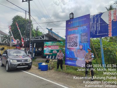 Tabalong, – Seksi Profesi dan Pengamanan (Sie Propam) Polres Tabalong melaksanakan pemasangan spanduk pelayanan cepat melalui QR Barcode Layanan Pengaduan Masyarakat (Dumas) Propam Polri, Selasa (22/10). Kegiatan ini bertujuan memberikan kemudahan kepada masyarakat dalam menyampaikan laporan atau aduan terhadap pelayanan maupun perilaku anggota Polri.
